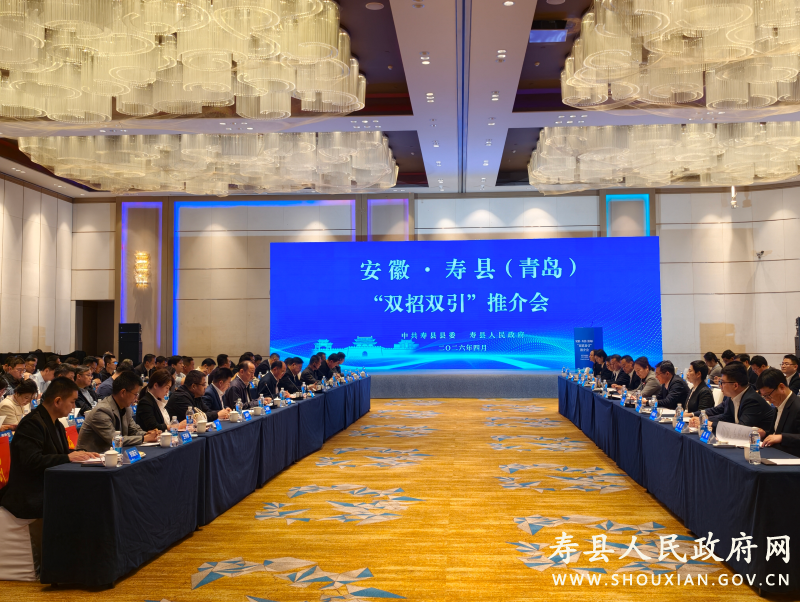 4月12日,安徽·寿县(青岛)“双招双引”推介会在青岛市举行,向19家商协会负责人、70余家企业代表及各界人才代表,全面展示了寿县在招商引资和招才引智方面的优势与诚意,取得良好成效。县委书记孙奇志出席并致辞,县委副书记、县长赵德兵主持推介会。县人大常委会主任朱勇,县政协主席李琼,县领导洪毅然、彭兆耀、刘猛、张亮、童丽、吴标以及县直有关单位、园区负责人参加会议。